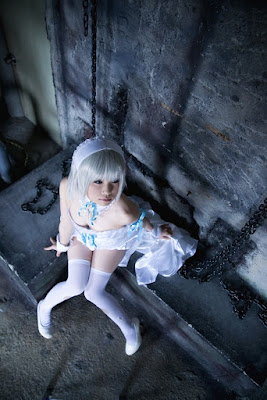 i love this Komomo Sakurai Cosplay by Shirayuki Himeno, actually i not read this manga, and know about this manga just right now, but I know Shirayuk has did awesome cosplay here, everything set well...the cosplay costume has been made with detailed and She even pay attention to the smallest detail like torn stockings knee section, her makeup has give contribution on this Komomo Sakurai Cosplay by Shirayuki Himeno thats was make Shirayuki Himeno look more sweet :P, but the most i love from this Shirayuki Himeno is the photograph aspect, the background has been chosen well to describe Komomo Sakurai as Magic holder, and the dark shade on this Komomo Sakurai cosplay can can display the lonely feeling in people who saw this Komomo Sakurai Cosplay by Shirayuki Himeno, i took this cosplay photo from cosrain.com nice ^^.