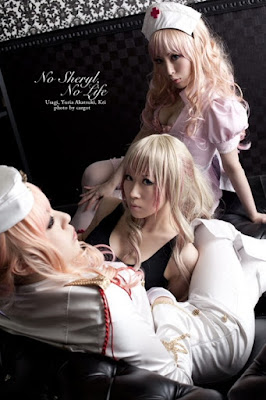 Well...i post Macross Frontier Cosplay by Usagi now, i got this Macross Frontier Cosplay by Usagi photo from cosrain.com, please visit there when had a time, as always, i always said, most the cosplay photo i found in internet, so i never intending to claim this cosplay photo as mine, i never see Sheryl nome cosplay with the Nurse outfit like that (i think this is my firstime ^^) everyting look cool here, actually there is another cosplayer in this Macross Frontier Cosplay by Usagi, they ar Kei and Yuria Akatsuki, they did well too, Usagi has different image with bold eyeline, and the Pink Nurse costume she manage to create more cute and smexy Sheryl Nome, the pink glasses has give more feminin shade to this Macross Frontier Cosplay by Usagi. love it ^^