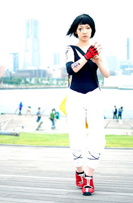 This is scond time i post Mirror Edge Cosplay photo, ive great Faith cosplay photo, but i think i love this Mirror Edge Cosplay by Omi Gibson too, though i think Omi gibson not fit enough as Faith which i ever imagine, and i dont like her wig too because i think thats was kinda different with Faith connor hairtcut (thats just my oppinion ^^" dont mean it), however Omi Gibson has mage to create great faith cosplay photo in this Mirror Edge Cosplay by Omi Gibson, she seem very tottaled in every aspect, his cosplay costume, make up, and her tatto too that was very close to the real one, i love her pose too, and the background of this Mirror Edge Cosplay by Omi Gibson was taken in many different place with full with high building which can represent Faith connor as "runner", Omi Gibson is japanesse cosplay queen but i dont really know about her too ^^", well i took this cosplay photo from MMosite.com, great cosplay.