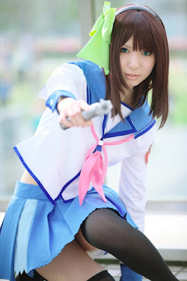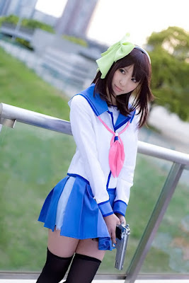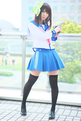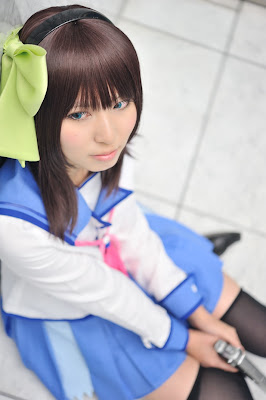 I love this Angel Beats Cosplay by Rinami however nami seem bit older as Yuri Nakamura which i ever imagine, (i always imagining Yuri is cute girl with oneside ribbon hairband) but Rinami has made different Yuri, Yuri in this Angel Beats Cosplay by Rinami seem more mature and become pretty girl ^^, i like the hair in this cosplay photo, Rinami look like not wearing a wig, thats seem like her real hair (that was different from Yuri hair in the anime, yuri hair has purple color), Rinami seem expressive here and very enjoy holding her gun, i took this Angel Beats Cosplay by Rinami from cosplay.lightchan.com, its nice cosplay photo by Rinami ^^.