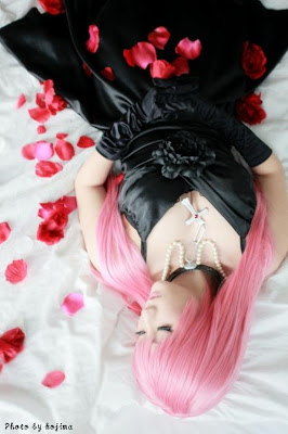 i took this Rosario + Vampire Cosplay by Koyuki from Cosrain.com, it this Rosario + Vampire Cosplay by Koyuki Koyuki not use High scholl uniform costume, that made her bit different with Moka Akashiya which seem always wear that uniform, i think koyuki seem fit enough if she become Moka character thoug i dont really like wit her Moka wig, That was nice wig but that wig look like plastic for me ^^, Koyuki wearing black dress in this Rosario + Vampire Cosplay by Koyuki, i think thats dress is no more then original dress i dont know if Moka Akashiya ever wear that kind of dress in the manga, but the dress which wore by koyuki has classical taste which can represent Moka Akashiya as vampire girl, and the rose flower has describe this as Rosario + Vampire cosplay ^^.